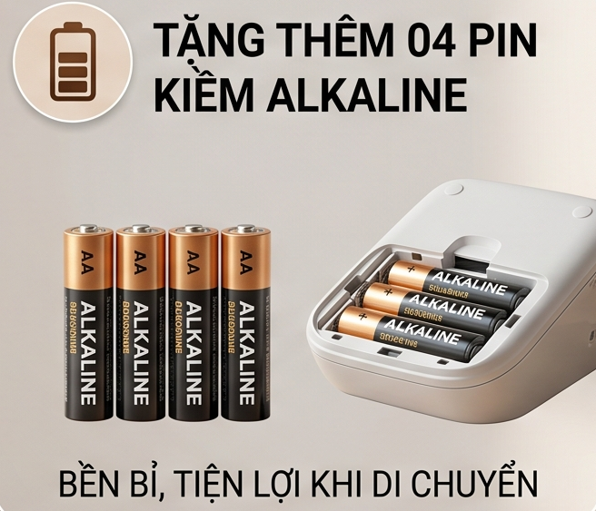 - Tuổi thọ của pin cao, đo được tới 1.000 lần đo với bộ 04 viên pin Alkaline mới.