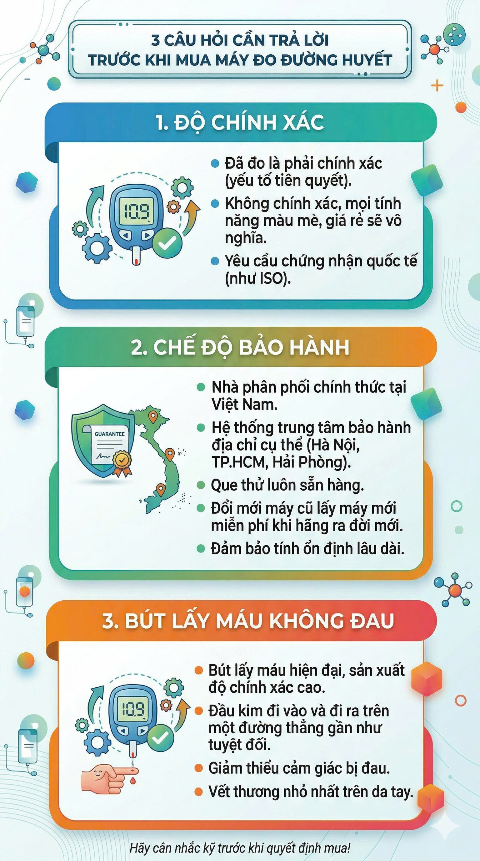 Bảo hành vĩnh viễn, tặng 25 que thử và 25 kim lấy máu