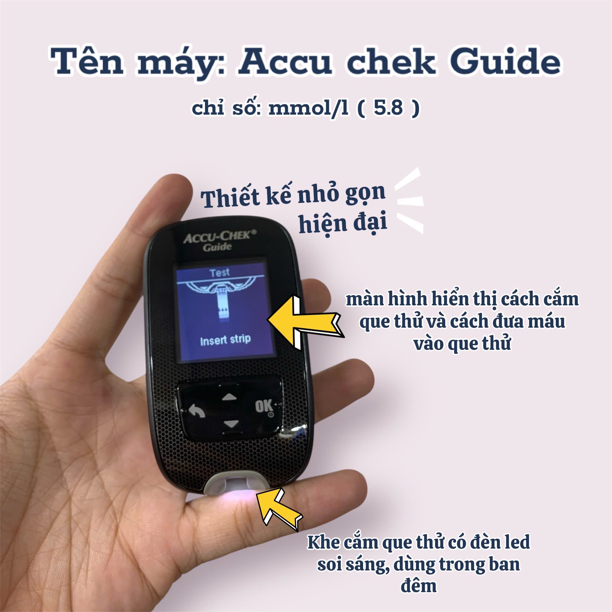 Hình ảnh thực tế sản phẩm Accu chek Guide khi cầm trên tay
